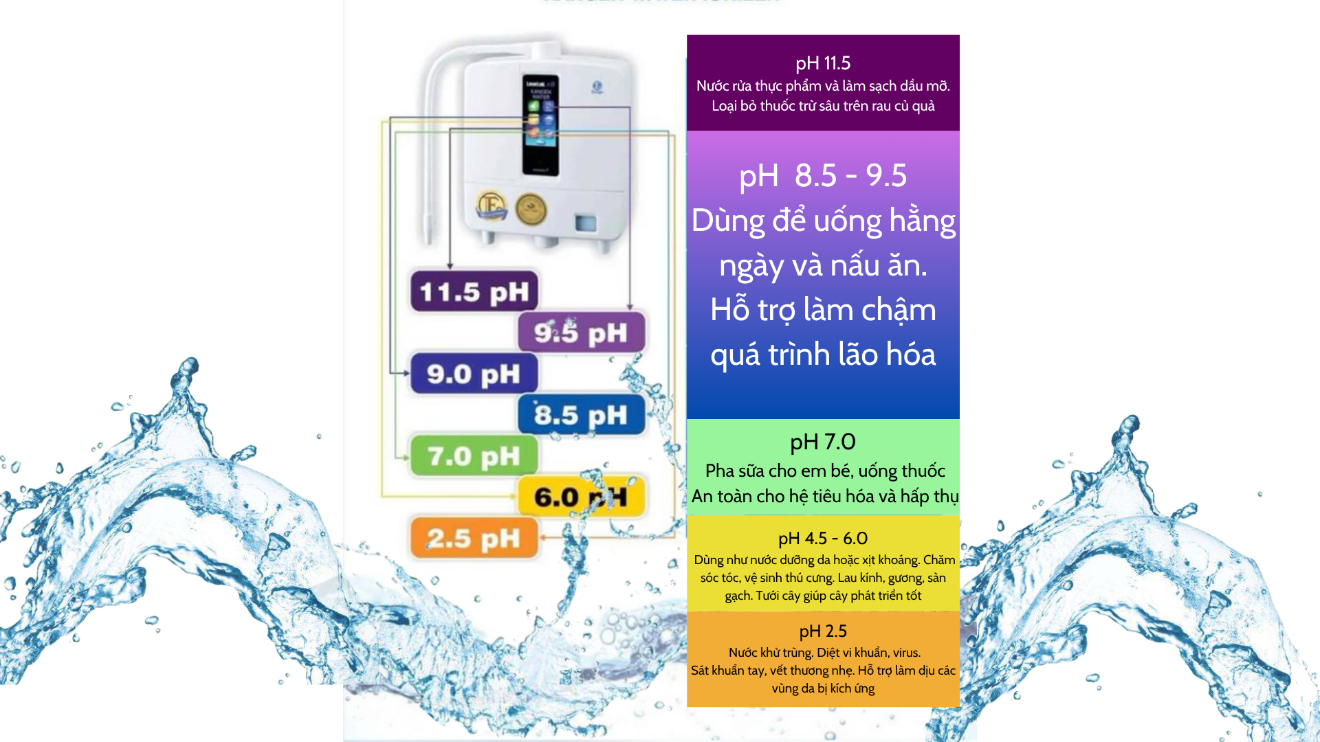 “Nếu bạn sống trong đô thị lớn, nguồn nước có thể chứa clo, kim loại nặng hoặc dư lượng thuốc trừ sâu. Đầu tư một thiết bị lọc nước ion kiềm không chỉ là chọn nước sạch, mà là chọn cách sống chủ động khỏe mạnh.”
