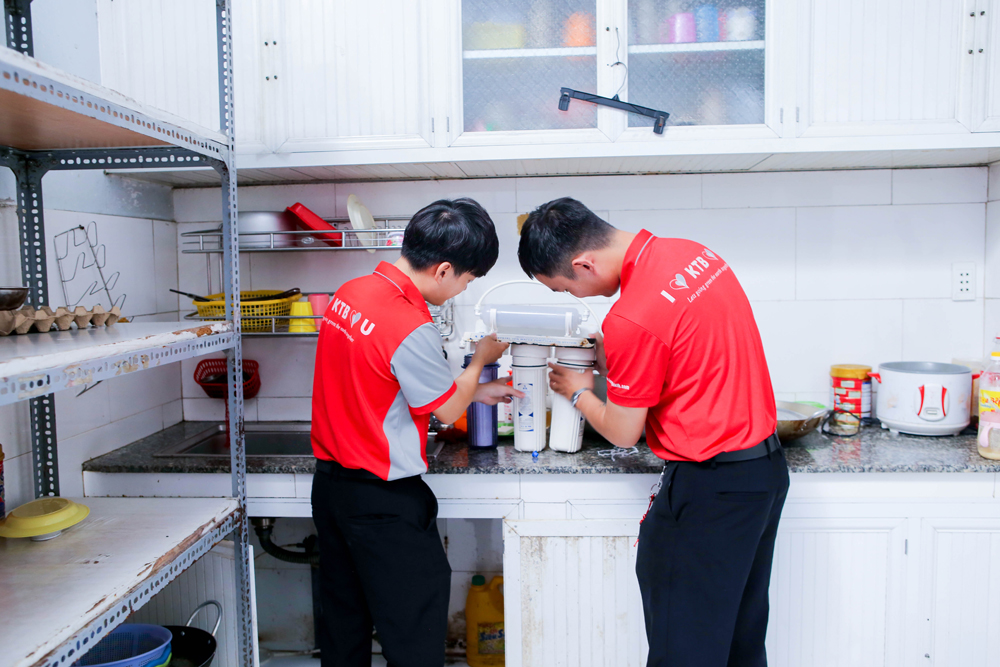 Kỹ thuật KTB thực hiện vệ sinh, thay lõi bộ lọc Crystal ion tại nhà bếp
