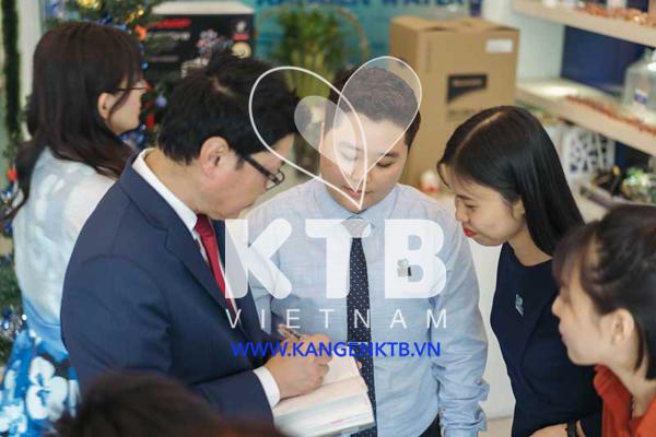 Tháng 12 vừa qua, trong chuyến đi công tác đến thị trường Việt Nam, Giám đốc chi nhánh của tập đoàn Enagic tại Thái Lan đã dành thời gian ghé thăm showroom công ty Kangen KTB để thăm hỏi sức khoẻ đội ngũ nhân viên và đưa ra nhiều đường hướng, lời khuyên cho hoạt động kinh doanh của công ty.