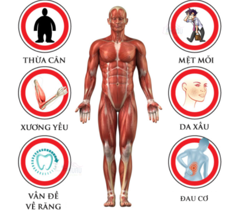 - Gây mỏi mệt, đau cơ, mất ngủ: cơ thể phải “huy động” các khoáng chất kiềm (magie, kali,…) để trung hòa axit, dẫn đến thiếu hụt khoáng kéo dài.