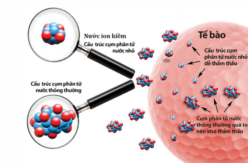 Nhờ kích thước siêu nhỏ, nước Kangen dễ dàng thẩm thấu qua màng tế bào, giúp: