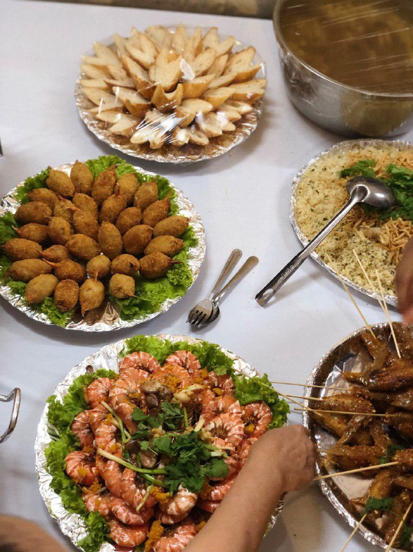 Bàn buffet với nhiều món ăn hấp dẫn, đúng chuẩn “phá cỗ” trăng rằm
