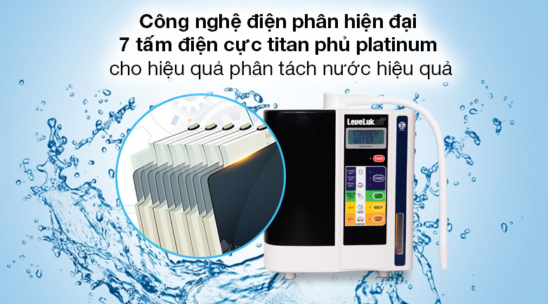 Máy Kangen sử dụng công nghệ điện cực tấm làm bằng Titan mạ Bạch kim nguyên khối (99.97%). Thiết kế tấm phẳng rắn chắc giúp diện tích bề mặt tiếp xúc lớn, cho hiệu suất điện phân vượt trội và ổn định. Đặc biệt, tuổi thọ điện cực lên đến 15-20 năm, một minh chứng cho chất lượng vượt trội mà ít sản phẩm nào trên thị trường có được.