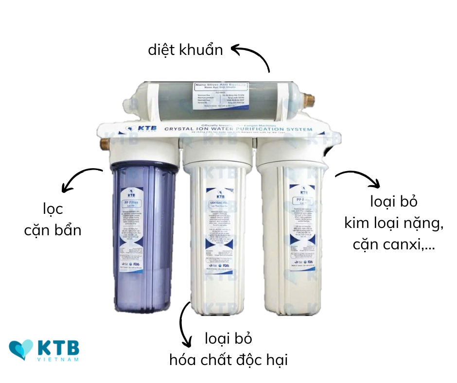 Hệ thống lọc của máy Kangen từ KTB bao gồm: