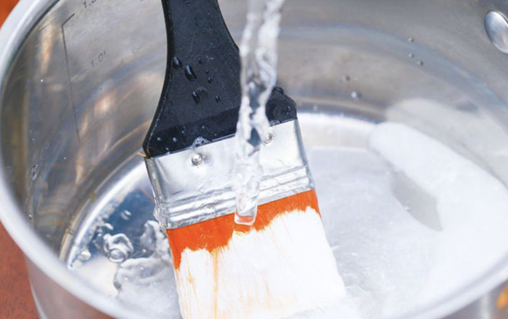 Sau khi sử dụng sơn dầu, ngâm cọ và các dụng cụ nhỏ trong nước pH 11.5.